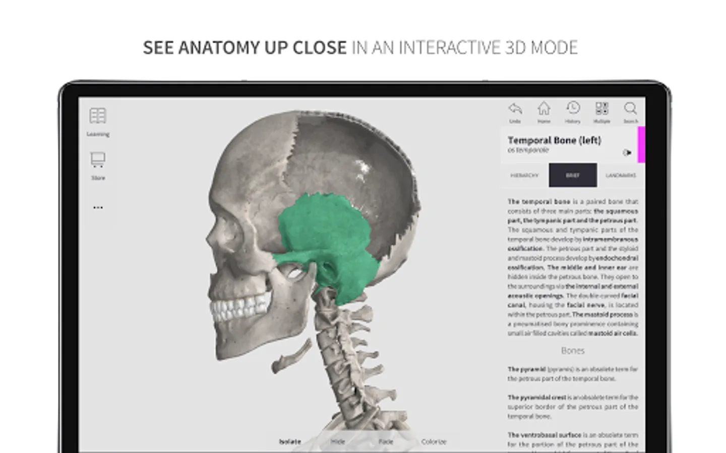 *** User-friendly interface: Zoom, rotate, scale, colorize, isolate, select, hide, and fade all anatomical structures