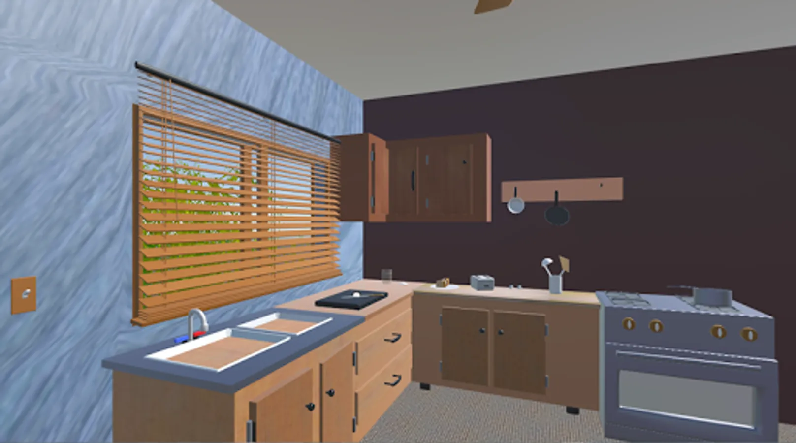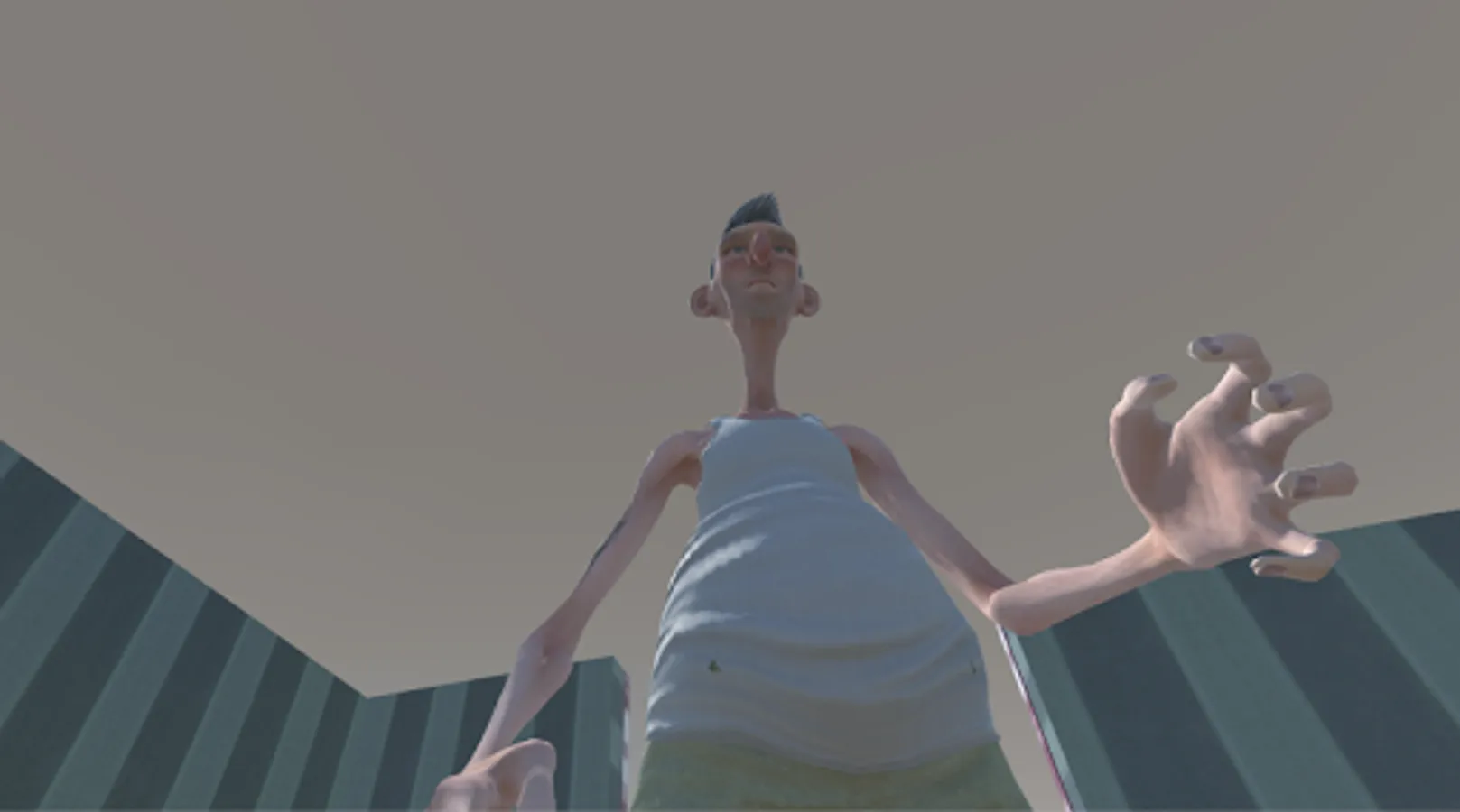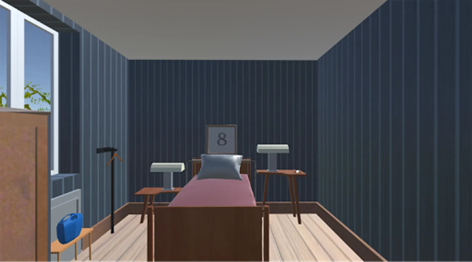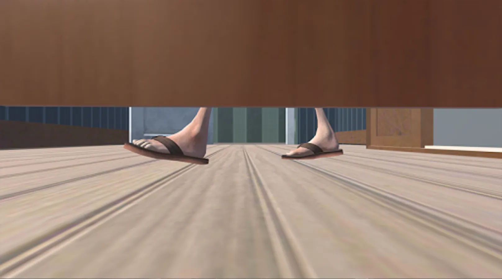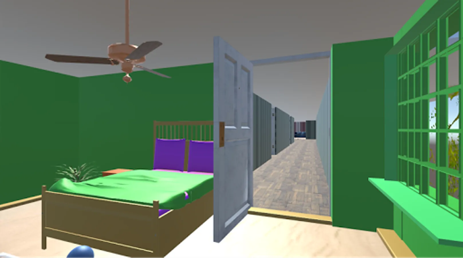 You were in the house of his strange neighbor. He was far more dangerous than you think. Do not get caught in his eyes, or he will grab you. We need to search the house, collecting items to get out of this hot spot.