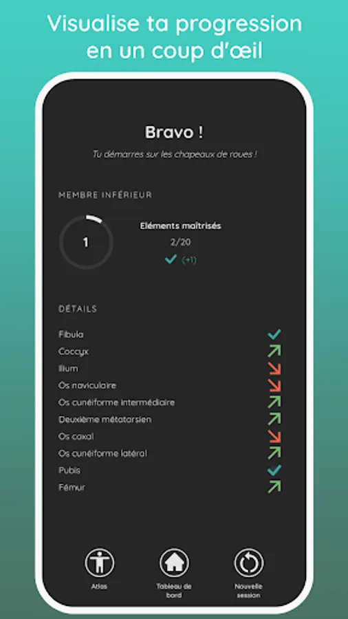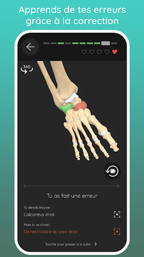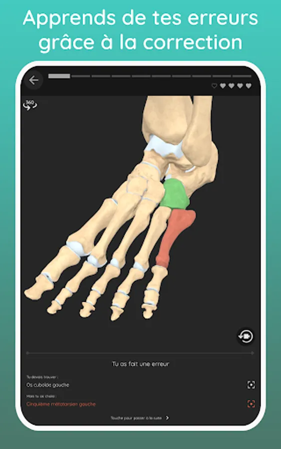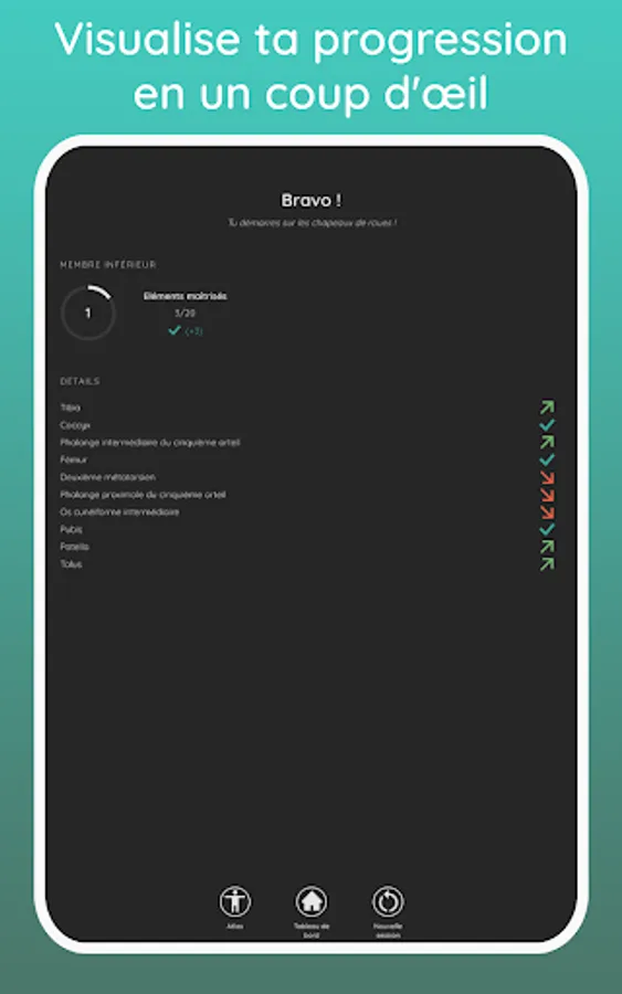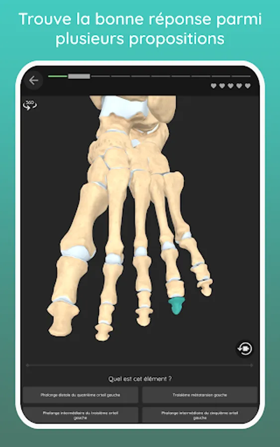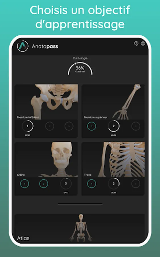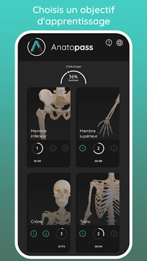 FOCUS ON WEAK POINTS. Choose to learn specific parts you're interested in. If a particular bone gives you a hard time, you can create dynamic training session on this individual element!