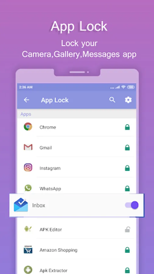 - Lock the app with a password and pattern lock to protect your privacy. e.g. Messenger, WeChat and any apps.