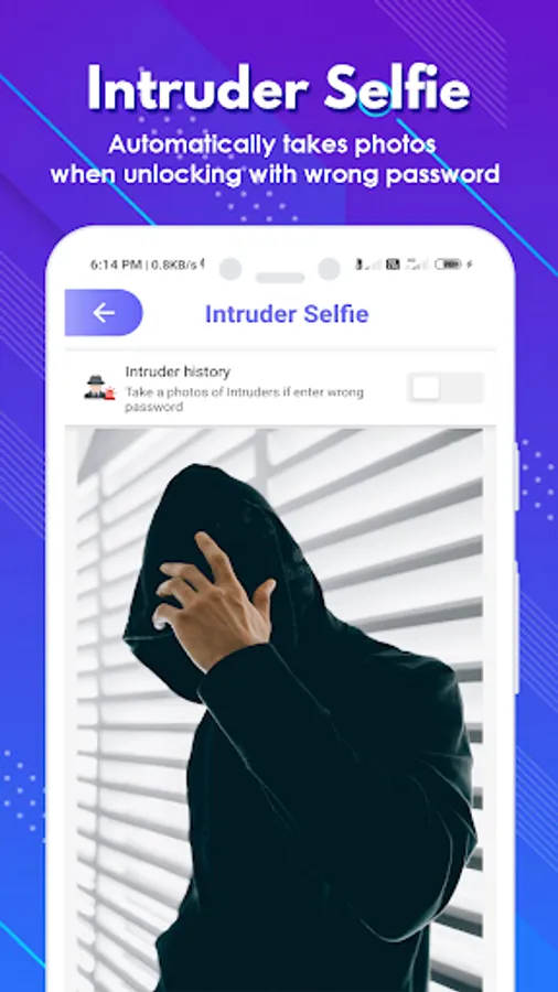 - Capture a snapshot and mails to you the selfie of anyone who tries to unlock apps behind you.