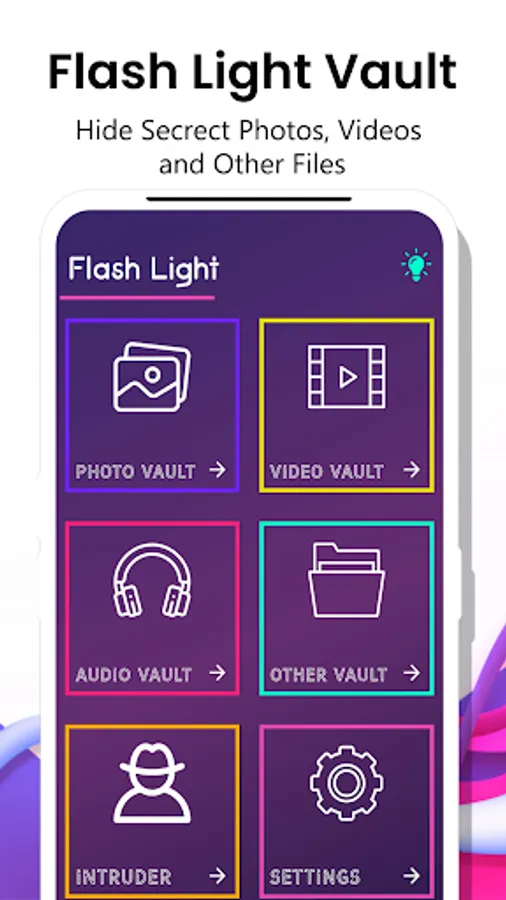 - Using "Flash Light Vault" you don't face any storage limitation for your hidden files if your phone memory has enough storage space.