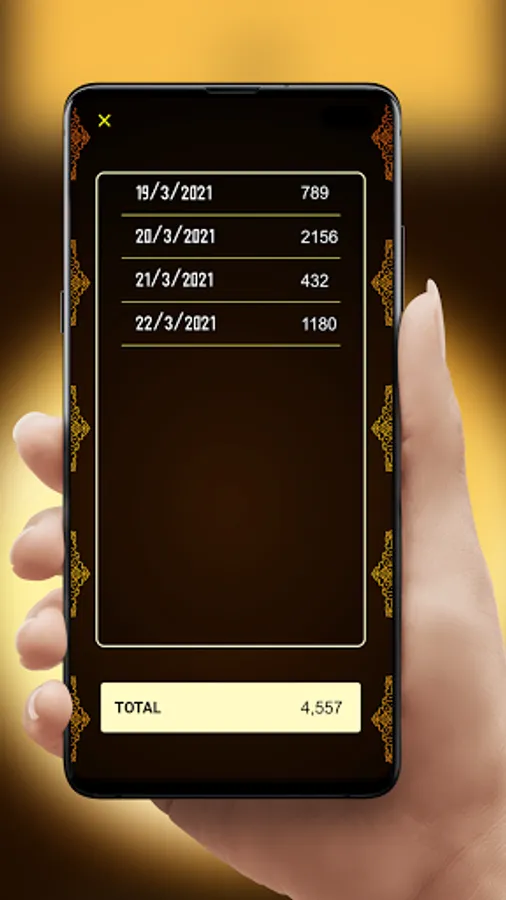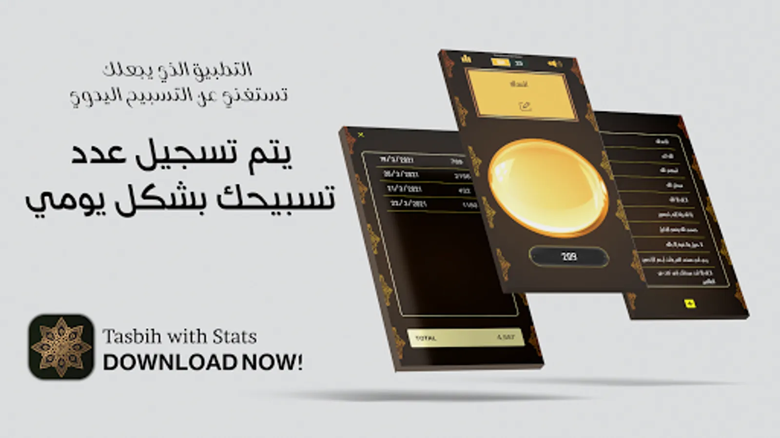 ☆ A Stats page that tracks your Total Tasbih daily, the statistics Table shows you the Date and Total Tasbihat.