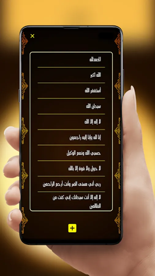 ☆ A Frame that holds the Tasbih name, the app has multiple default tasbihat , but you can add your own tasbih .