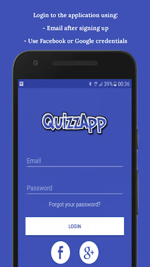 - Authentication using Email, social sign-in using Google Sign-in or Facebook sign-in