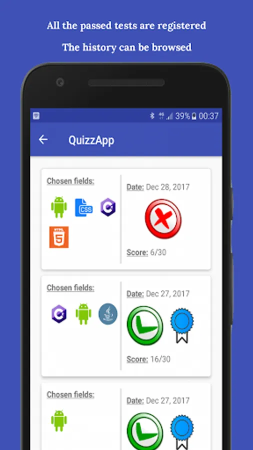 QuizzApp is a multiple choice questions application to increase your technical IT knowledge and helps in interviews and exams preparation. Once a test is successfully passed, the Certificate of Completion can be obtained in PDF format.