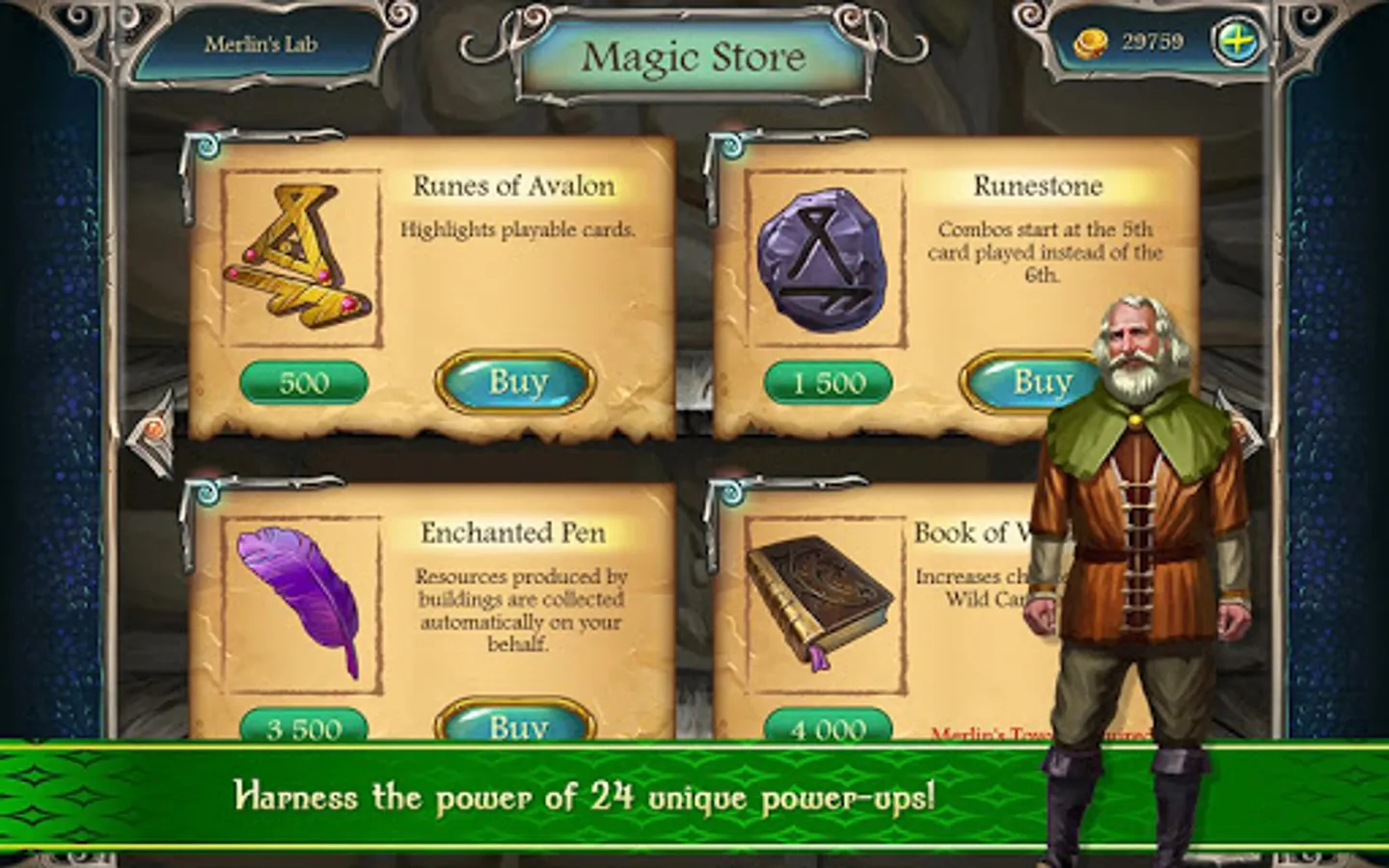 Harness the power of the cards as you travel across Avalon through 300 meticulously crafted levels of engaging solitaire to collect the resources you need to restore the kingdom to glory. Simultaneously relaxing and challenging, Avalon Solitaire 2 features 24 power-ups, over 30 buildings to rebuild and reap benefits from, plus wild cards, jokers, hazards and more, making it a must-play for solitaire fans!