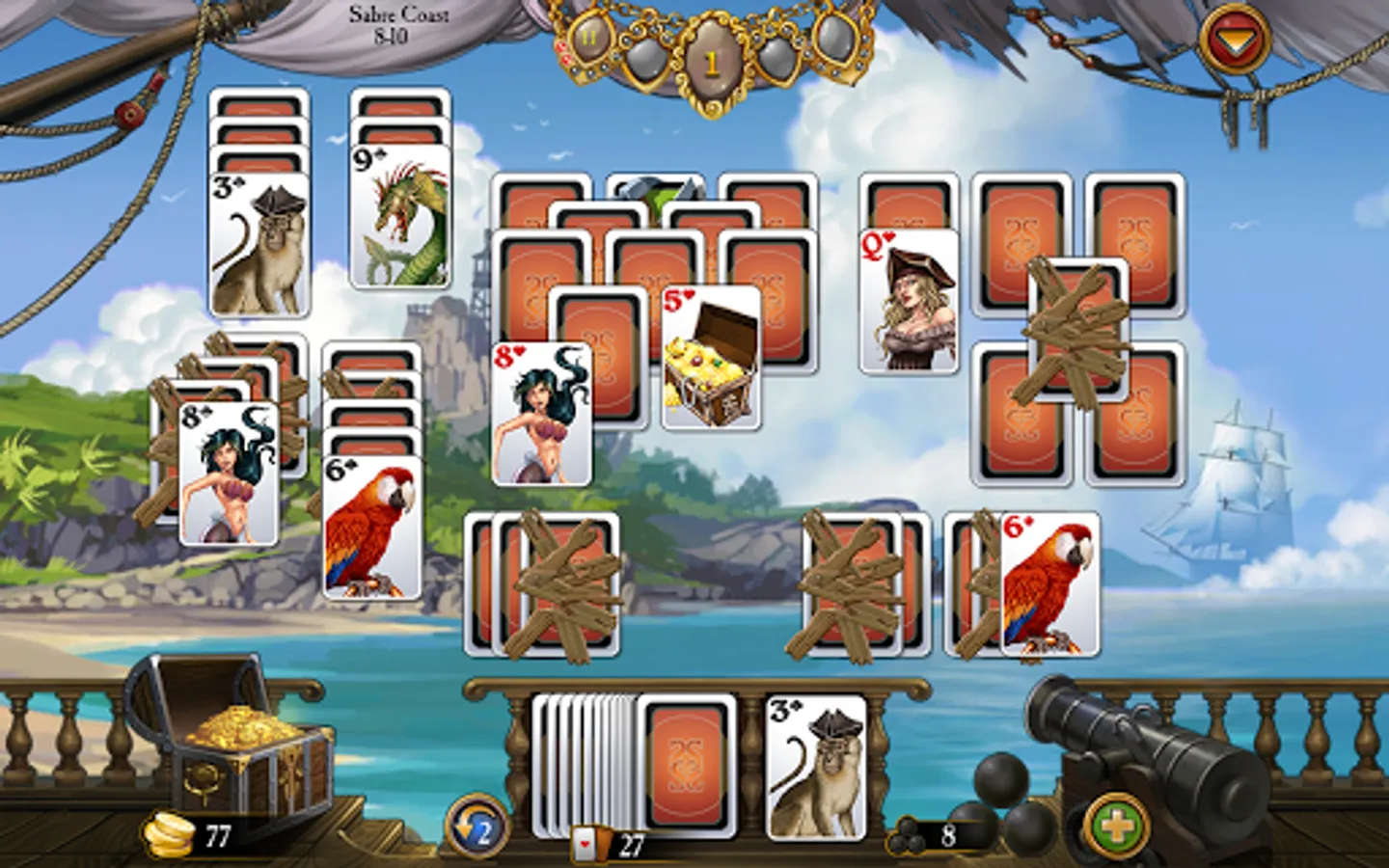Take command of The Falcon and explore over 300 levels, firing cannonballs and matching cards from your choice of beautiful decks as you plunge yourself into the adventure. Put together legendary combos to rack up as much gold as you can, then spend it on over 20 unique upgrades for your ship and your island hideaway. Along the way, you'll also encounter exciting mini-games to test your luck and skill, and earn awards for your derring-do.