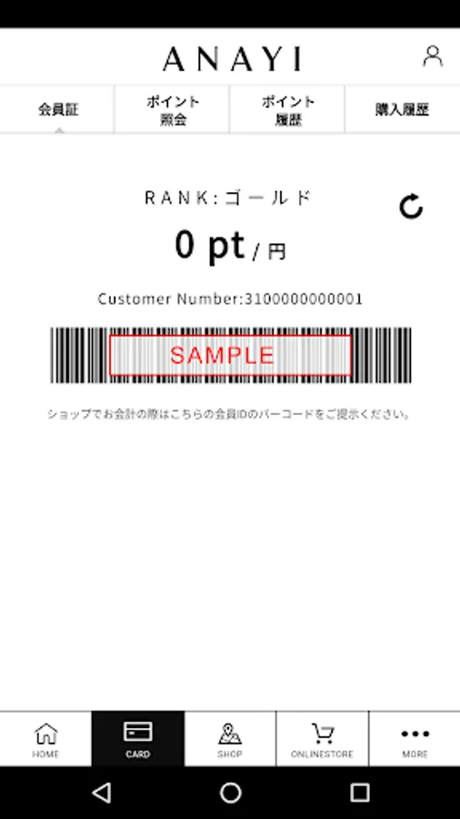 - membership card bar code (Please present at the cash register at the time of purchase in the shop)