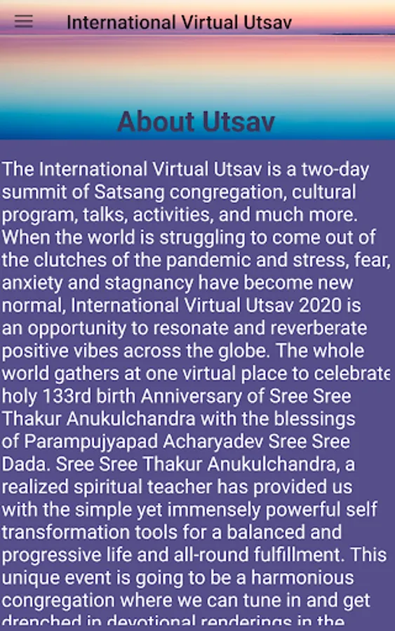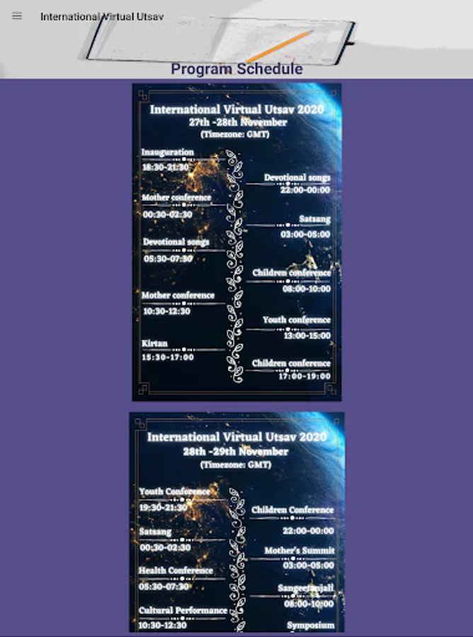 International Virtual Utsav 2020 is a grand virtual conference that is going to happen across the globe on 28th and 29th of November. Use this application to get all essential information about the Event, along with Program Schedule and other links.