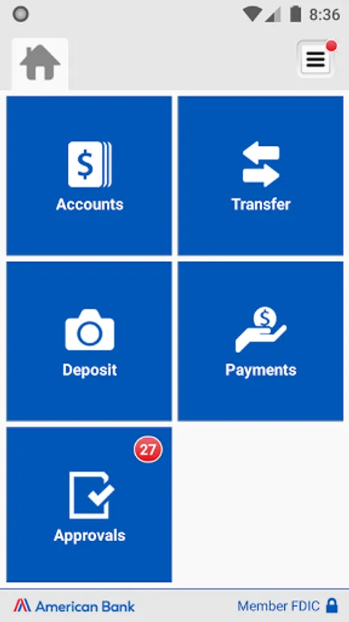 • Approve transactions scheduled through American Bank BD Mobile Business Banking, including fund transfers, ACH transfers and wire transfers