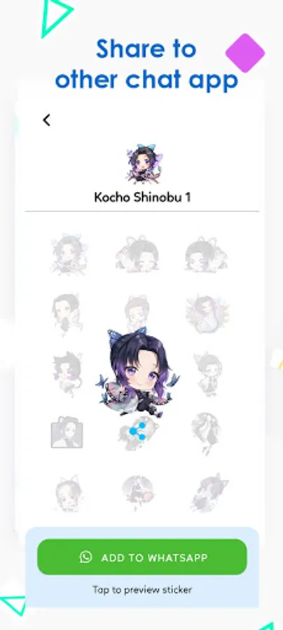 This app provide a huge sticker pack of Kimetsu no Yaiba such as Tanjiro Kamado, Nezuko Kamado, Zenitsu Agatsuma, Inosuke Hashibira, all of hashira such as Giyu Tomioka, Mitsuri Kanroji, Obanai Iguro, Sanemi Shinazugawa, Gyomei Himejima, Tengen Uzui, Muichiro Tokito, Shinobu Kocho, Senjuro Rengoku, and demon, etc.