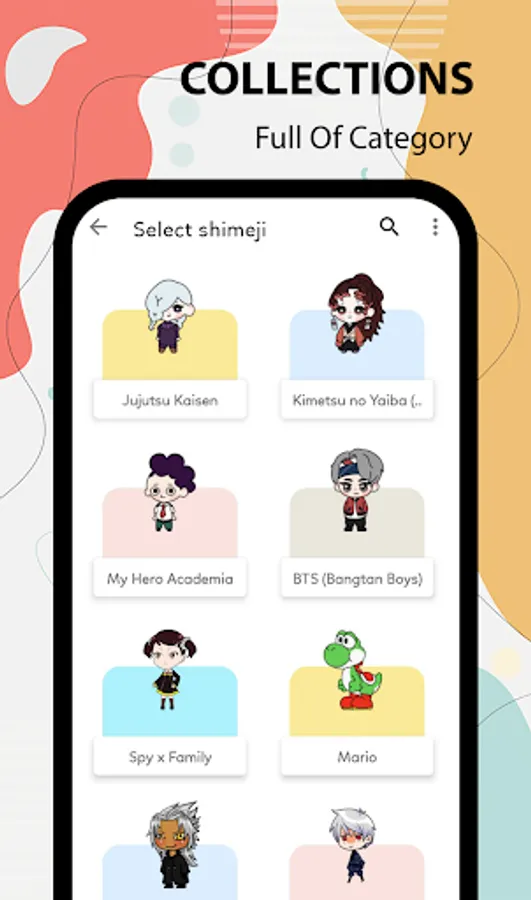 Many cute shimeji/desktop pets of a large collection: such as anime/manga (One Piece, Naruto, Demon Slayer, Jujutsu Kaisen, Hunter x Hunter, My Hero Academia, etc) or games (Mario, Genshin Impact) or superheroes (Spiderman, Thor, etc) or BTS (Jungkook, V, Jimin, etc) and so on...