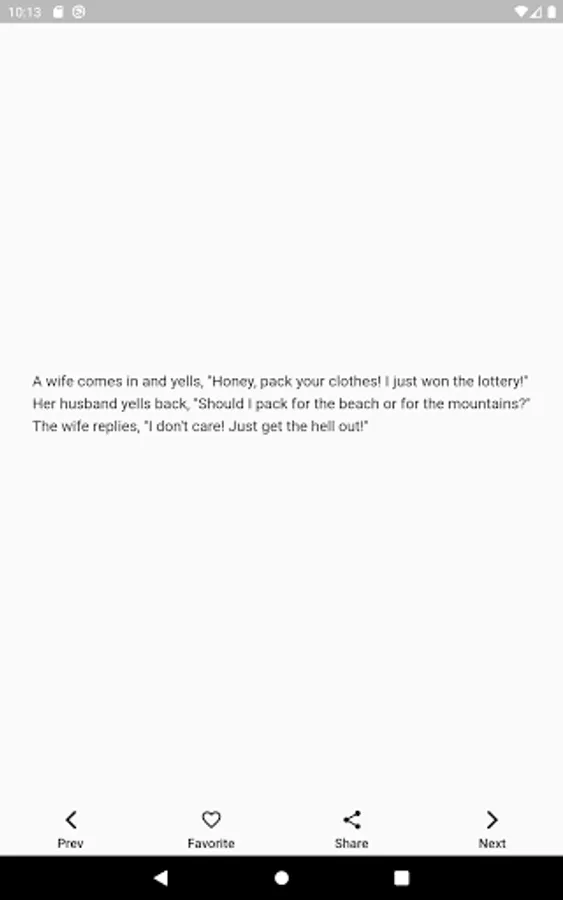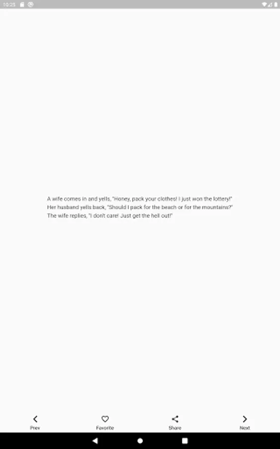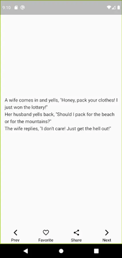Selected funny jokes. The best jokes in one app. You can save them to your favorite jokes or share them.