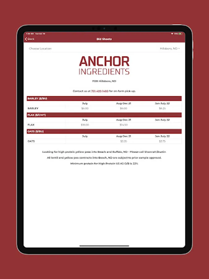 Access Bid Sheets: We want to help you save time and maximize profits. View Anchor Ingredients' proprietary Bid Sheets for each of its locations in real-time.