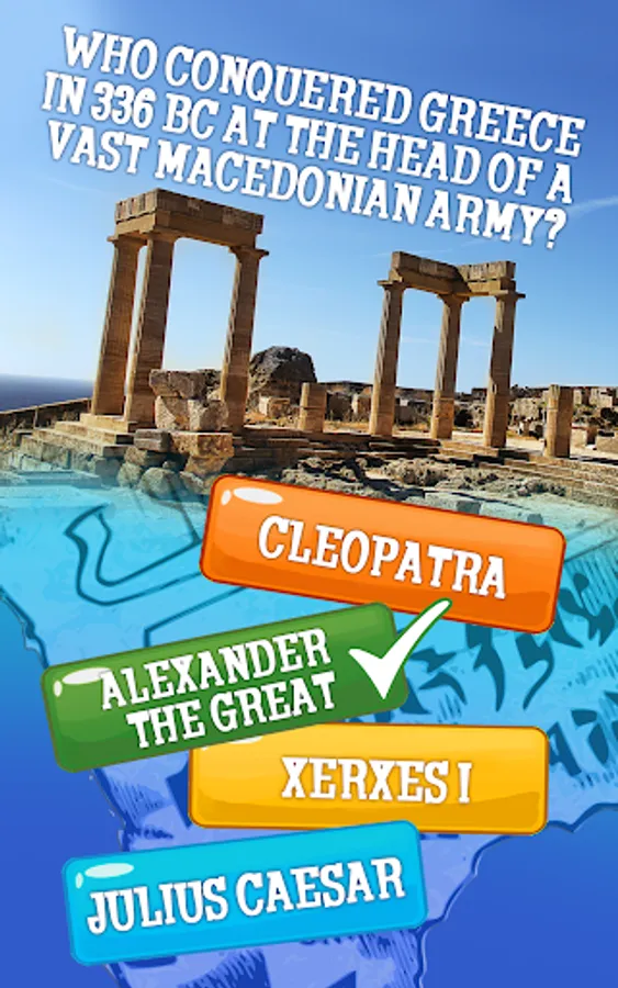This awesome game combines all interesting historical games into one - Egypt quiz, Greek quiz, Roman quiz and more! Explore not only western civilization but ancient India and China as well. Return to the old times of the pyramids, pharaohs, temples, Greek philosophers and Roman emperors. Try out the ultimate history quiz 2020 with ancient history questions and answers to test your general knowledge of all the most important historic events and persons like Gautama Buddha, Ashoka, Confucius, Alexander the Great, Aristotle. Play the best knowledge quiz 2020 and prove you could be a real historian!