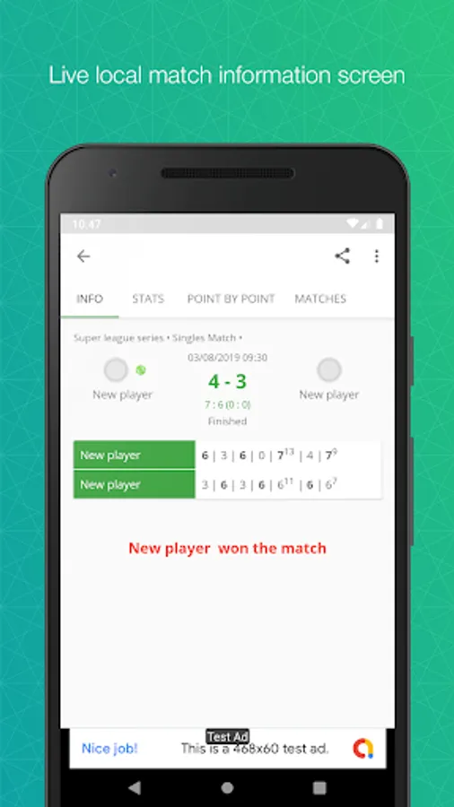 Track and publish your local sport matches like a professional matches. We are supporting multiple sports such as Tennis as of now. [ Cricket, Football, Volleyball, Baseball, Basketball] Coming soon!!. We are giving this feature as absolutely free for everyone.