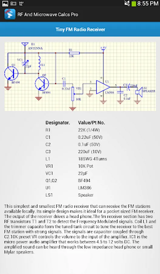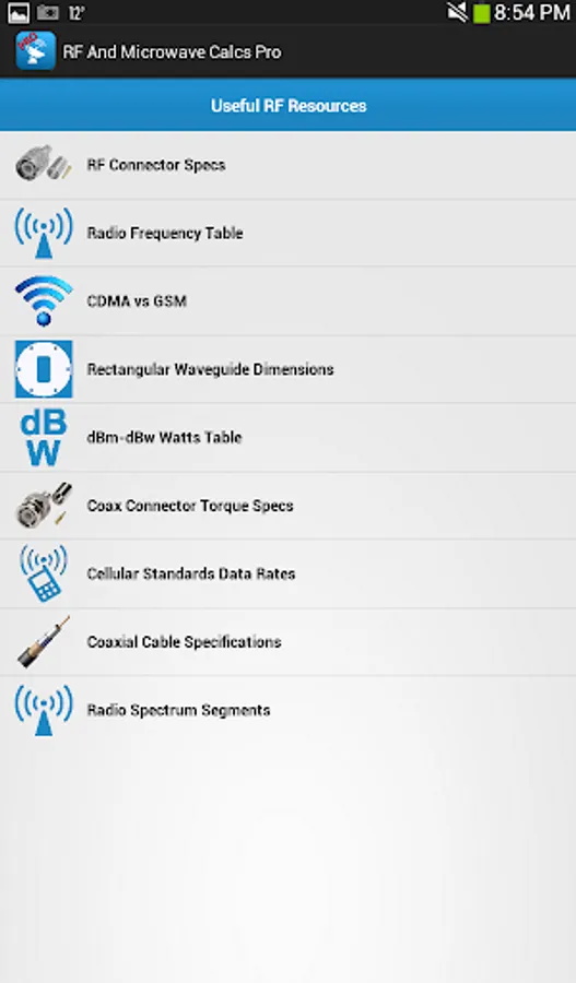 This app is for RF and microwave students, engineers and hobbyists. App has many RF calculators and resources that will help you in study and in professional life.