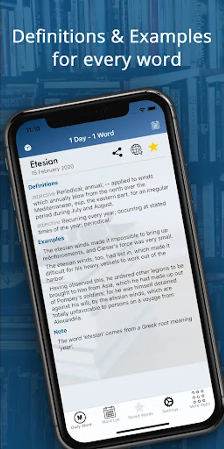 Following the "1 Day - 1 Word" format, adding new words each day, this app aims to improve your vocabulary. Relevant and useful words are added daily. Every word has Definitions and Examples.