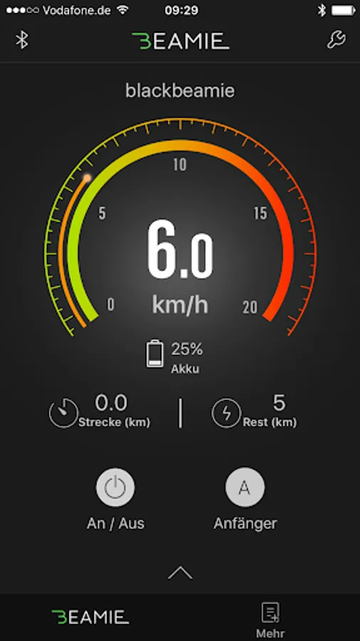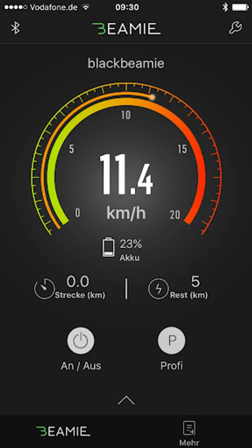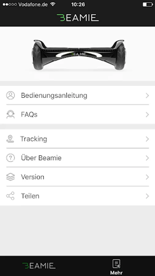 With the app you can Beamie your speed, distance traveled and total kilometers as well as the battery level and read the temperature of your Beamies. Depending on the skill you can between the beginner, normal and change the professional mode and even individual settings, such as Max. Speed, driving force or steering sensitivity make.