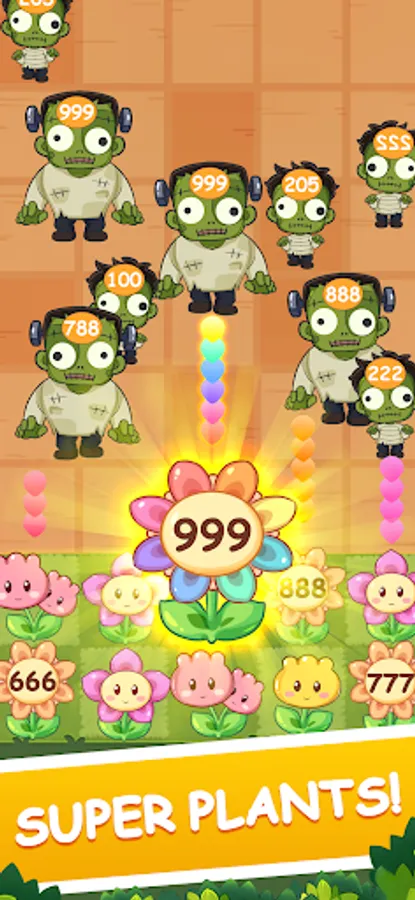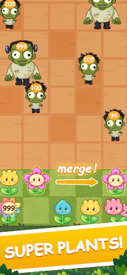 This is a turn-based synthesis game where you can attack zombies by merging flowers. Each merge doubles your attack. Each operation will cause the zombies to advance one step forward. If the zombies reach the end, the game will fail.