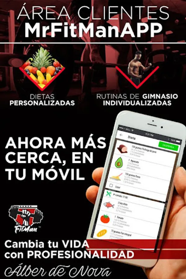 MrFitMan - Personal Trainer is the official application of known coach Alber Nova: Bachelor of Pharmacy, Fitness competitor and trainer. Here you will find lots of information that will help you achieve your goals in an easy and convenient way, hand in hand always a great professional who will never leave you alone.