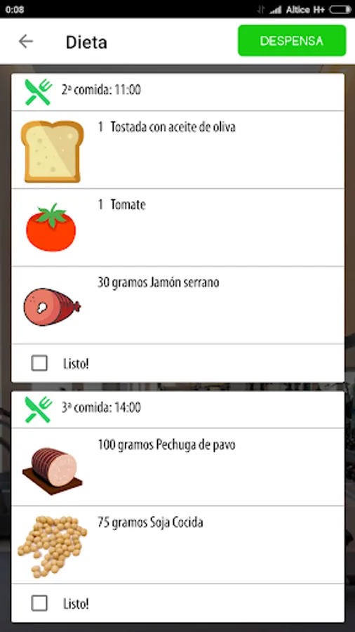 Nutritional follow dietary and information on foods that are included in it. Fitness recipes and suggestions to include all nutrients. Consultation of a weekly diet vision to anticipate and prepare it longer, minimizing the risk of abandonment.
