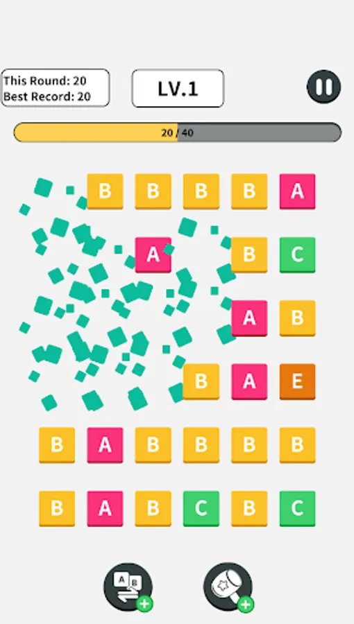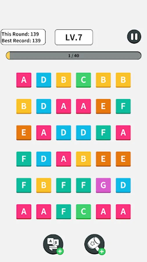 In this game, we can upgrade and synthesize English letters you forget what the synthesized letters are, there will be a preview to remind you each letter corresponds to a different color, and the picture is rich in color when you encounter difficulties in the game, you can use props to help you. It will also record the scores and records for you.