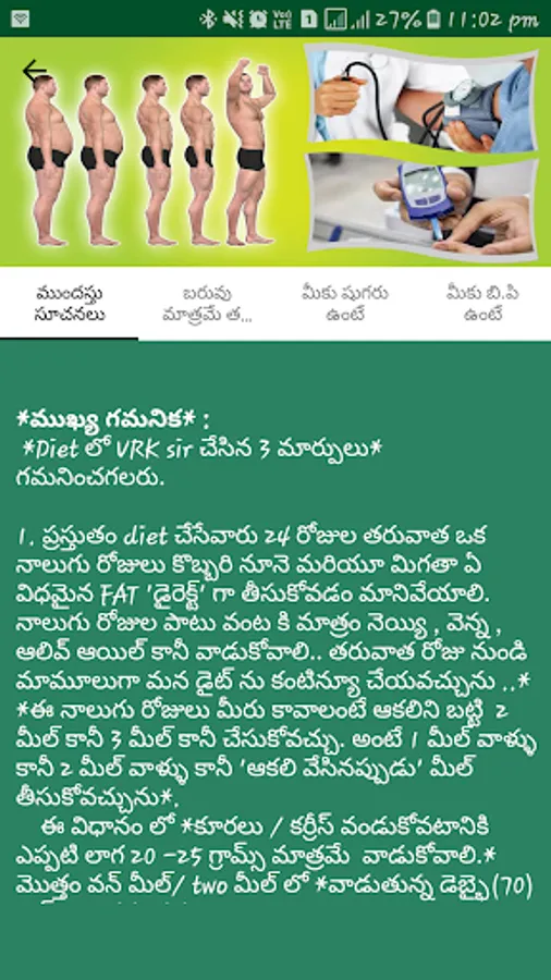 This application VRK Diet Plan New will be fully informed about Sri Veeramachaneni Ramakrishna Diet Plan in Telugu. Veeramachaneni Ramakrishna has been known as the Magician of Natural Medicine for a long time. Millions of people suffer from BP, Diabetes, Obesity, Overweight, etc. In complex phases, with out any medicine and physician, Sri Veeramachaneni Ramakrishna has found a successful diet plan. By this plan, anyone can become healthy.