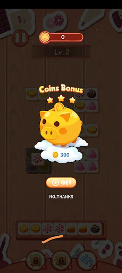 Tap and move any tile onto the board. Match 3 same tiles on the board to clear it. Do clearing as fast as possible to collect more stars. Puzzle will complete when all tiles are cleared. Game will fails if you have seven or more tiles on the board.