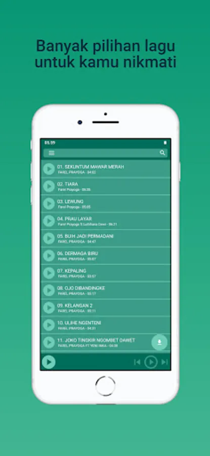 The application of Sekuntum Merah Mawar - Farel Mp3 Offline Latest MP3 Viral Offline Latest this has a simple design and easy to use. Can also be installed on all versions of android. And this Offline Mp3 application is also very light with an equalizer feature to adjust the sound according to your taste.