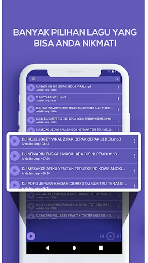 This DJ song application but don't say Mama Viral social media contains a collection of the latest viral DJ songs with very clear quality and full bass. This original and free DJ MP3 Song application is perfect for you fans of the latest 2022 dj remix mp3 songs and popular dj remixes. Because this application contains the latest and complete collection of DJ songs. For those of you lovers of the collection of all collections of complete DJ songs offline, you must immediately install the latest viral DJ MP3 Song Collection application, because this DJ song application is very pleasant to hear whenever and wherever you are.