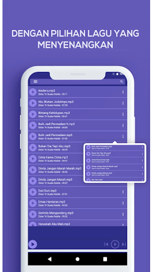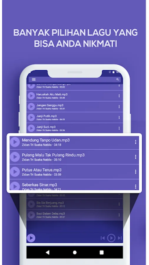 The full application Zidan Feat Tri Suaka - Nabila mp3 offline complete song is a collection of songs applications that are sought after by offline song lovers. so you don't have to worry about running out of internet quota when listening to all this song collection. This application also has the advantage of all other Cover Song applications. With just one installation of this song application, you can enjoy all the most complete collections of songs offline.
