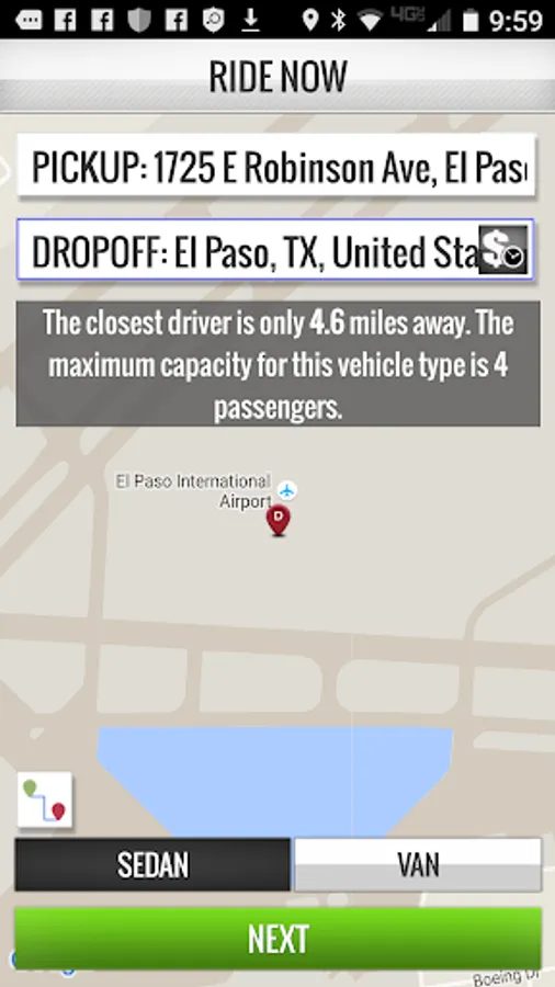 Welcome to AndaleRide – On-Demand transportation at your fingertips! It’s a free mobile app for the El Paso-Las Cruces area, bringing you fast and safe transportation. We specialize in cross-border trips to Juarez (airport, consulate, site seeing trips).