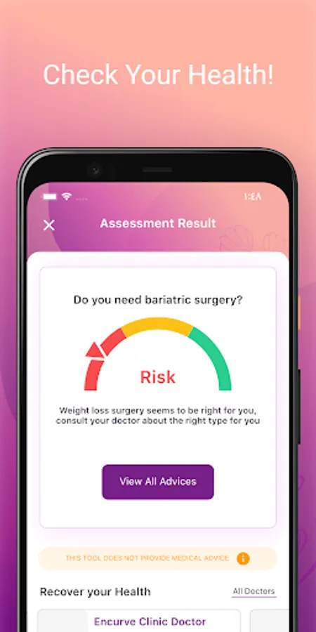 • Taking Risk Assessment based on selected specialties, by answering some prepared questions by our experts, then you will see your risk assessment result and be aware with your health degree.