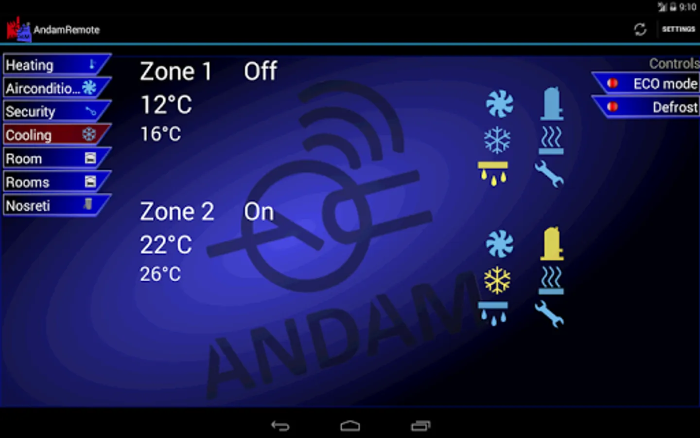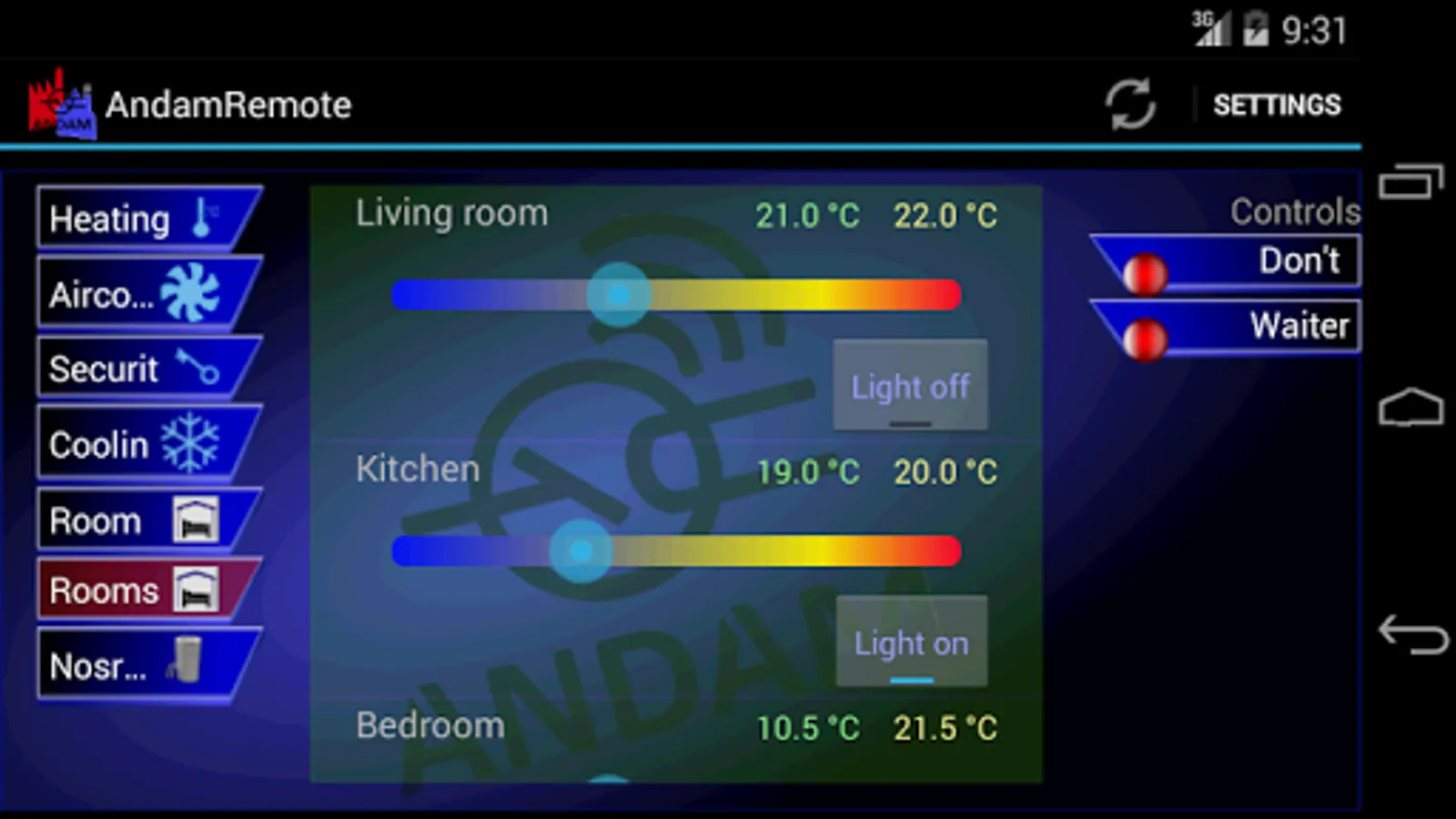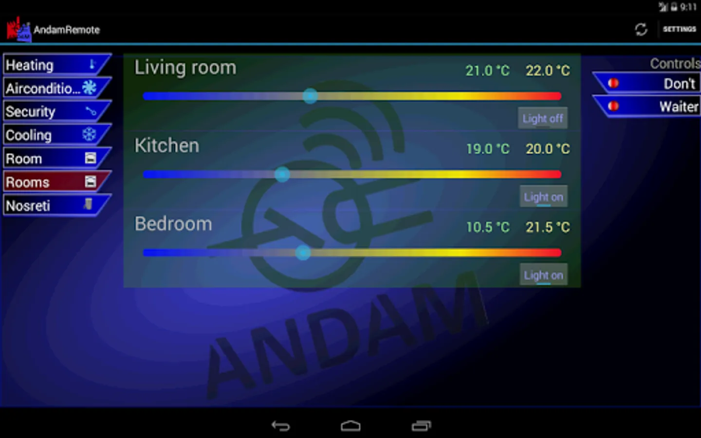 Remote control application for Andam iControl system. Application shows and controls ports set for user interaction by predefined topics.