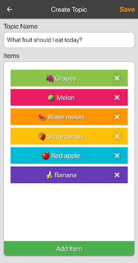 The application allows you to create topics with content that you are confused to choose. From those content, the application will create a rotation containing these content. And you will spin the wheel to find the random selection.