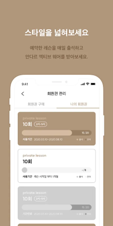 ● Lesson Attendance: You can attend a lesson and check the attendance of a previously reserved lesson.