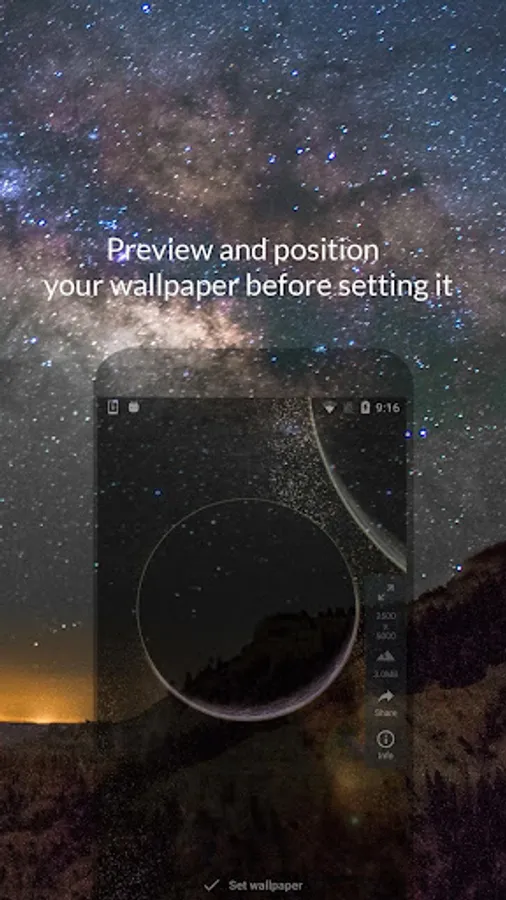 Set your wallpaper in some simple clicks. Just pick your favorite one, preview then set it.