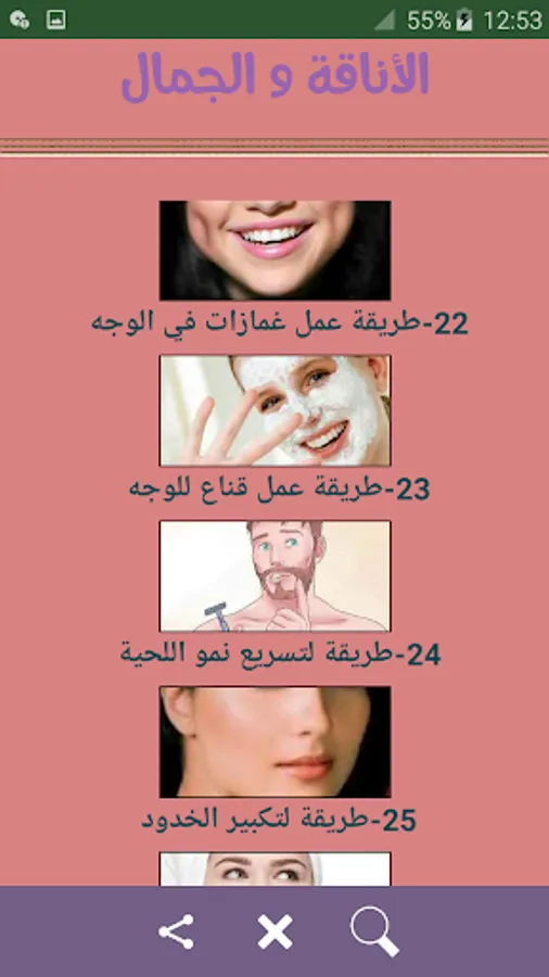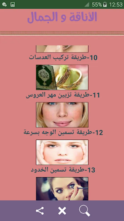 Beauty Tips Application Integrated care for the body and skin for an ideal body and skin that is always radiant if you suffer from any problem in the skin or the body, the final complete solution here is more than thousands of tips from the most famous international beauty experts, recipes for elegance and beauty is a free and renewed application (without the Internet) that contains A large collection of proven recipes for every girl who dreams of lasting beauty and grace.