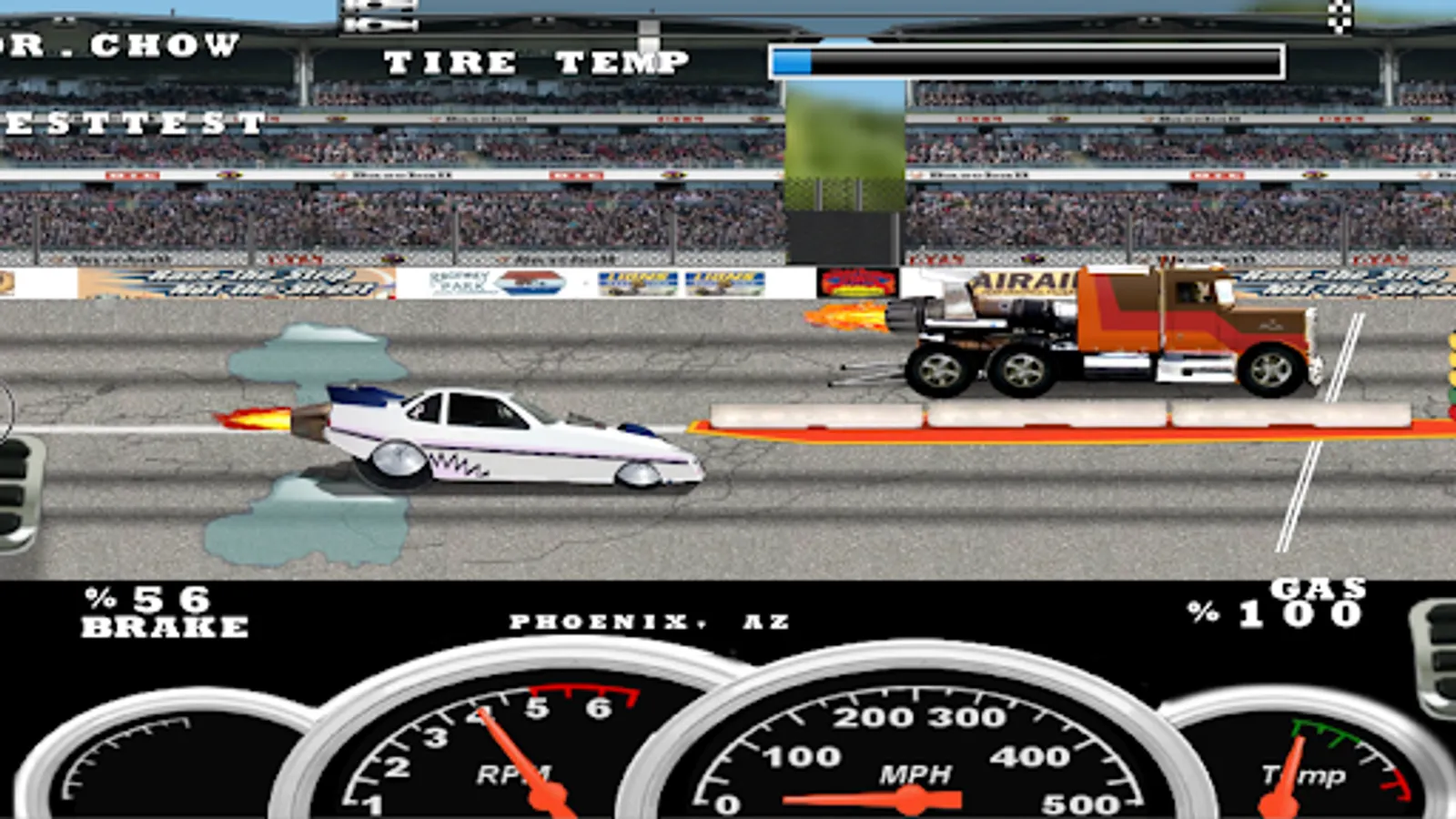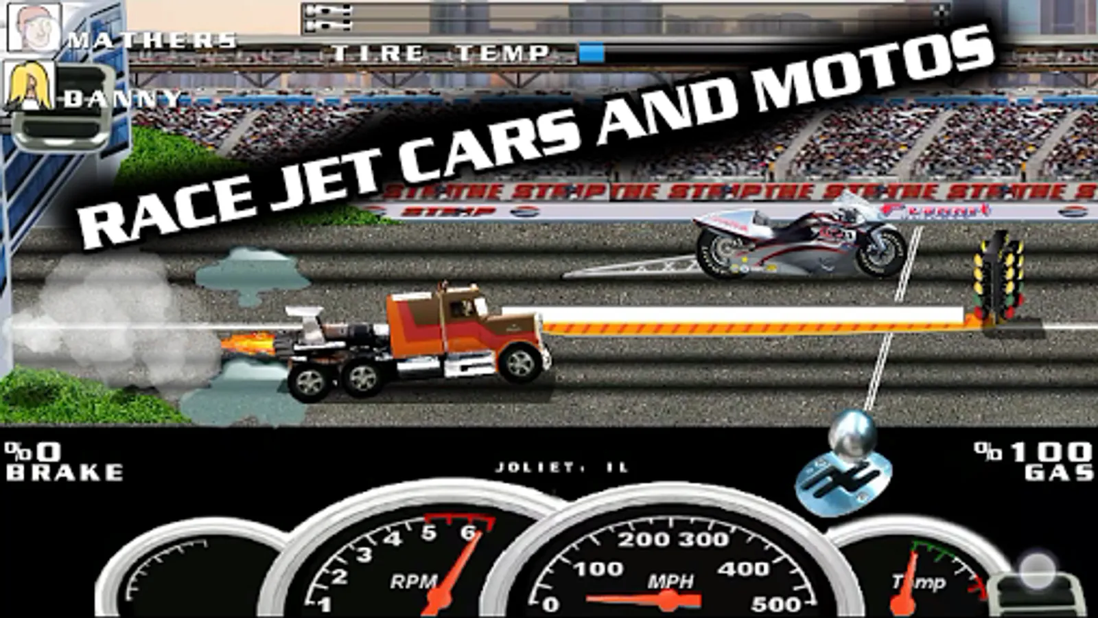 Build up your bank roll in multiple levels of drag racing dragsters with increasing speed. Get to the top fuel or nitro methane class to start laying down sub 4 second passes!