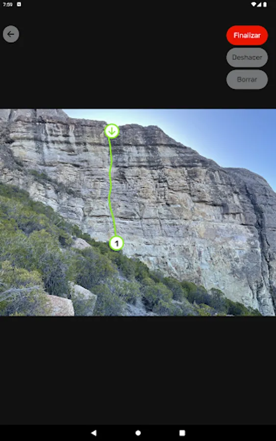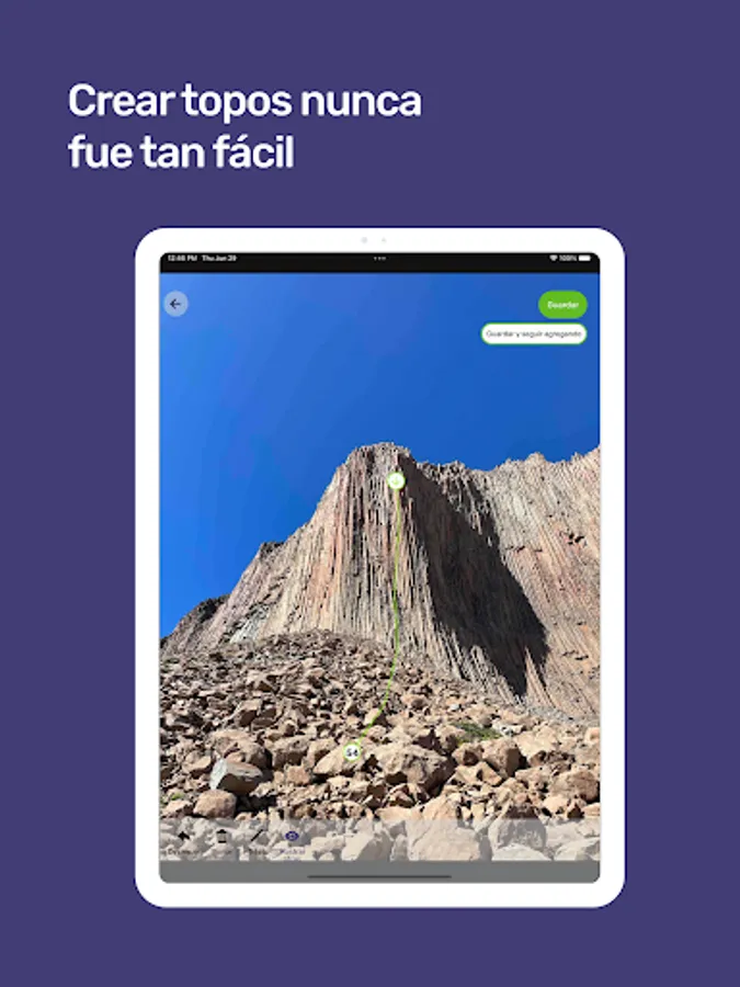 Welcome to the first version of the Andescalada App and our topos manager. With this application you can upload photos of the walls, draw the routes on the photo and document their degree of difficulty and type of route.