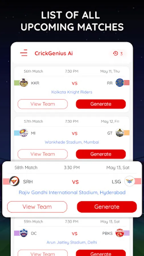 Our app uses advanced algorithms to analyze player and team statistics, as well as current form and matchups, to suggest the best possible fantasy team lineup for your upcoming matches. We take into account a wide range of factors, including player form, injury status, recent performances, and opposition strengths and weaknesses, to provide you with the most comprehensive and accurate team suggestions possible.