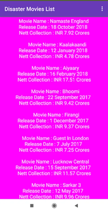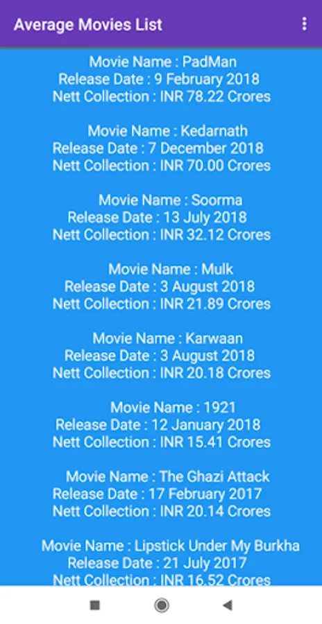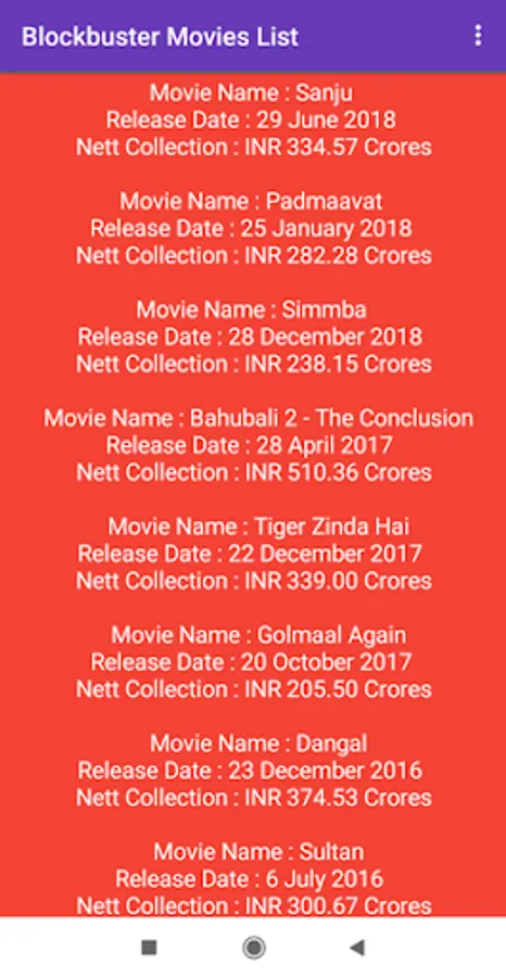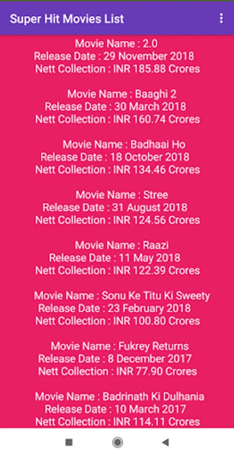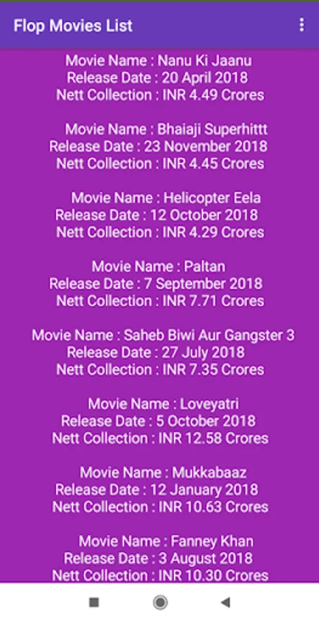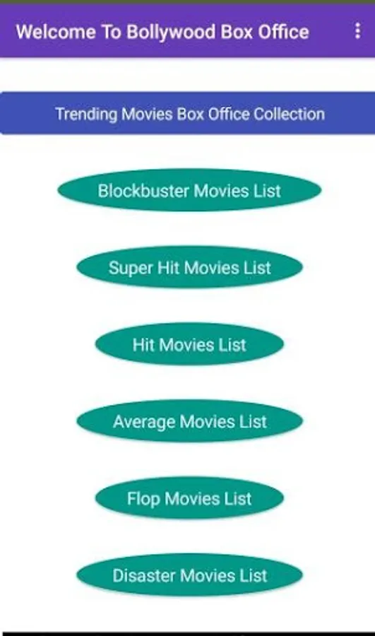 This application provides the live updates of box office collections of trending Bollywood movies. Presenting you latest Bollywood movies box office collection. This app brings you the information of all Bollywood movies as per their box office performances in India as well as in overseas. The app provides day wise collection, total collection and worldwide collection of Bollywood films at the box office.