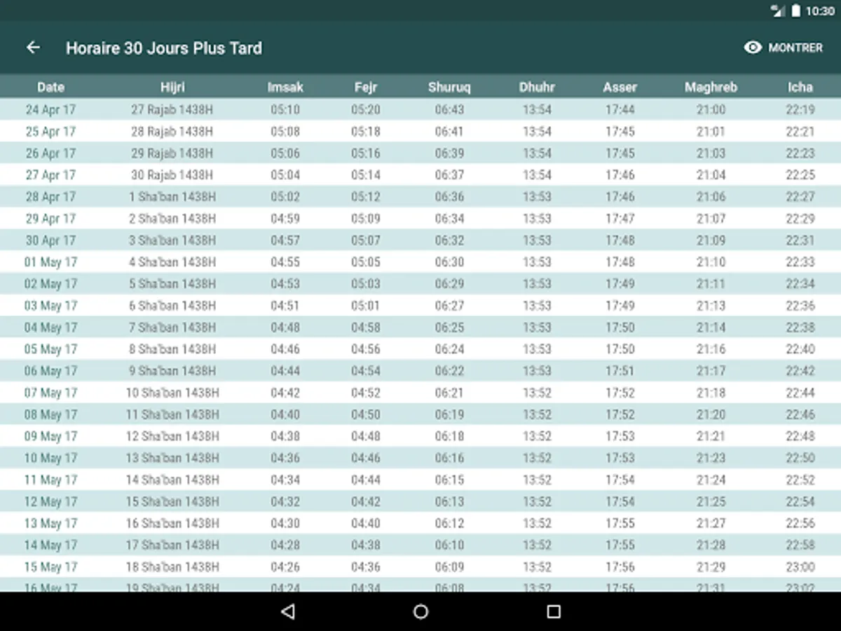 - Prayer Times and Imsakiyah (meal eaten before starting fasting in ramadan).