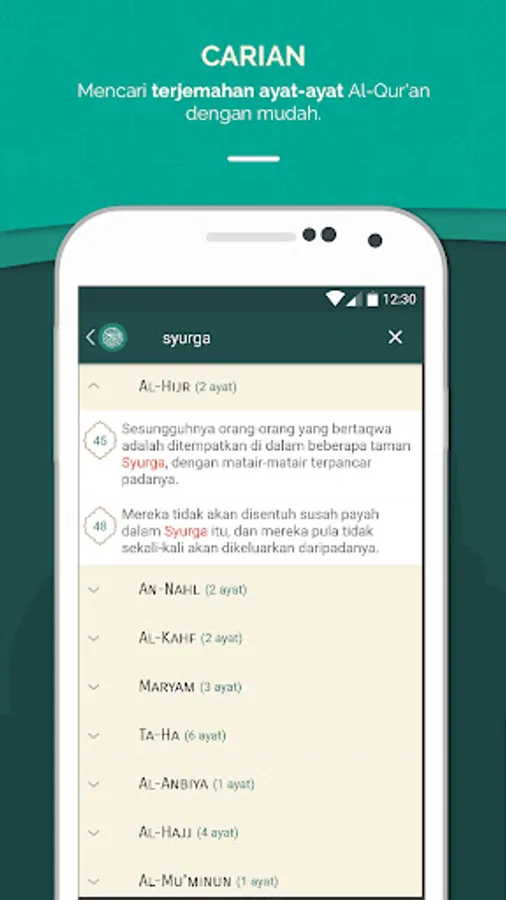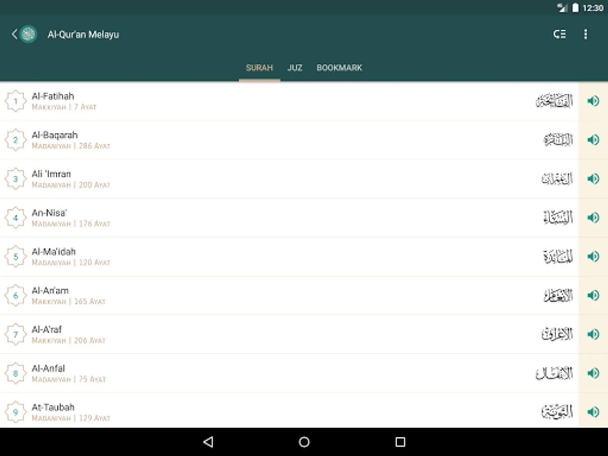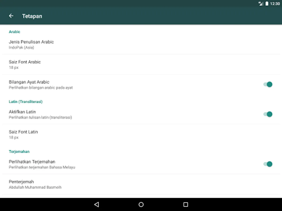 - Baca Al Quran boleh dengan mode paparan landscape atau portrait.