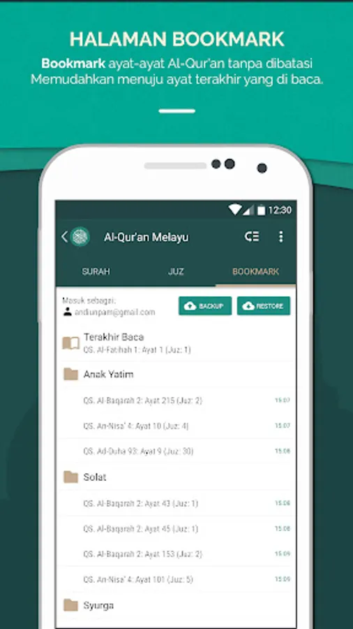 - Backup-restore bookmark dan penanda bacaan terakhir ke Cloud.