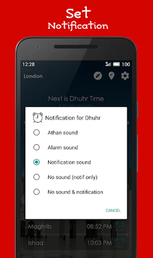 * Set the prayer schedule manually from those that have been calculated based your location.