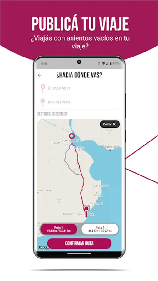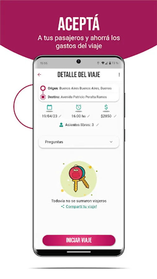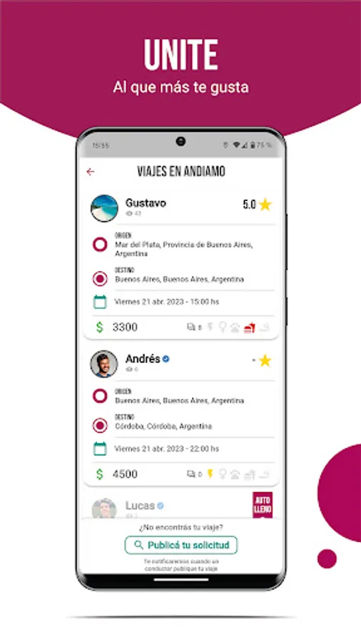 Podés ahorrar plata 💰 tiempo 🕒 y reducir tu huella ecológica 🌳 mientras disfrutás del viaje con nuevos amigos. Nuestra app fácil de usar te permite encontrar conductores y pasajeros en tu ruta, reservar y pagar online 💻 todo en un solo lugar. Además, nuestra tecnología de match garantiza que siempre vas a encontrar compañeros de viaje confiables y seguros 🔒.