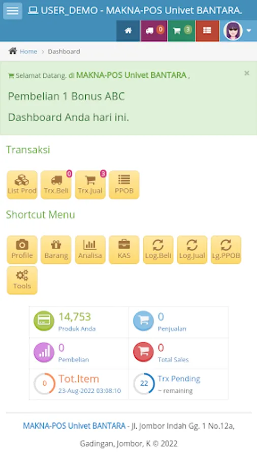 information system sales of Food and Retail Products. for practical classes and examinations of the Faculty of Economics, University of Veterans Bangun Nusantara Sukoharjo